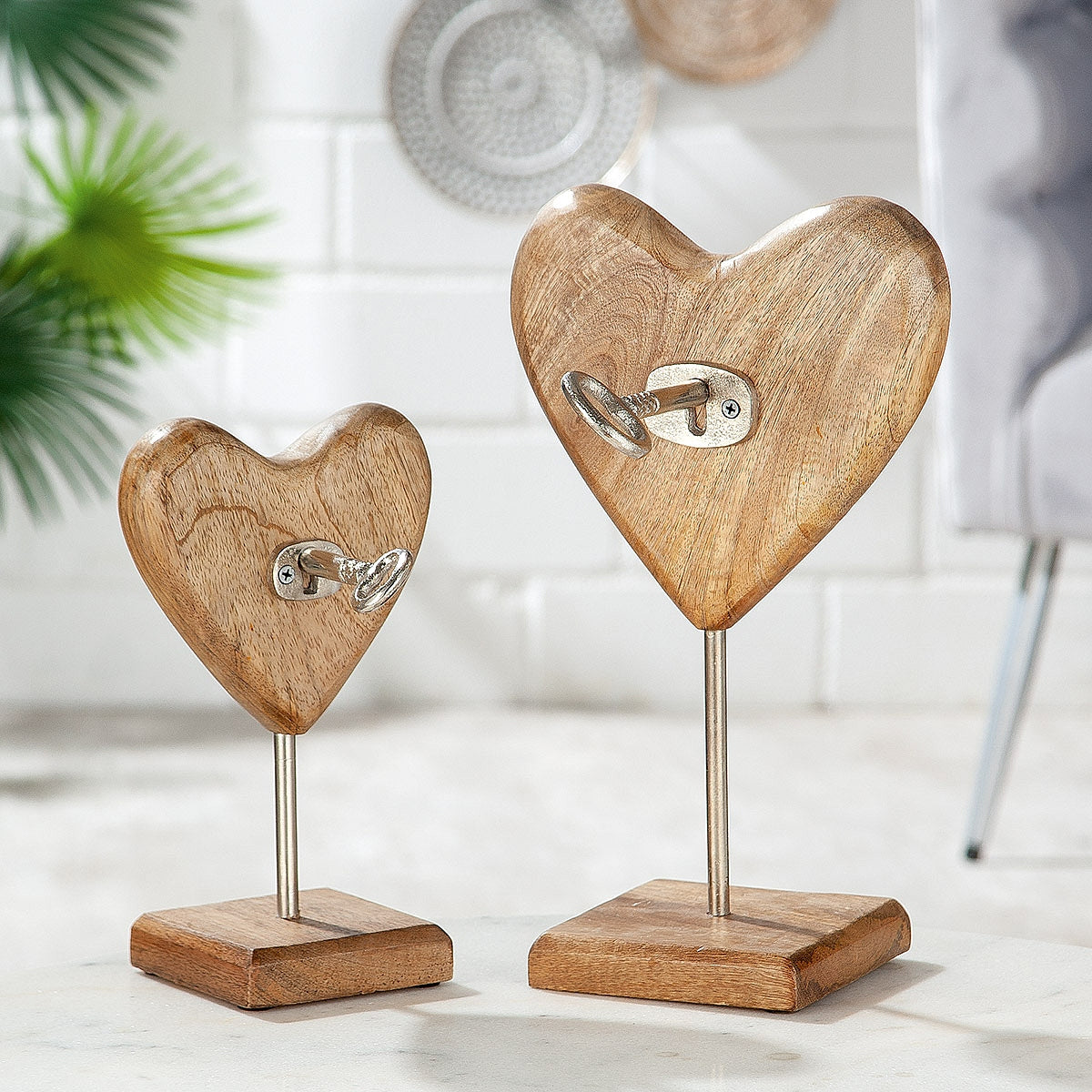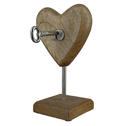 Decorative ArteLibre Heart With Lock On Base Natural/Silver Wood/Aluminum 15x15x24cm