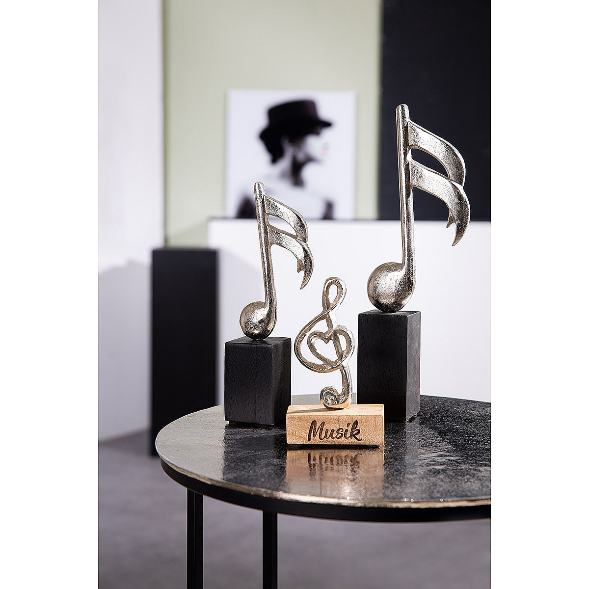 Decorative musical note on a silver/black aluminum/wood base 5x5x23.5cm.