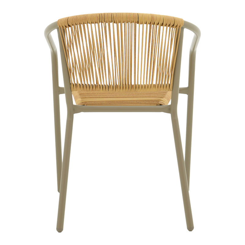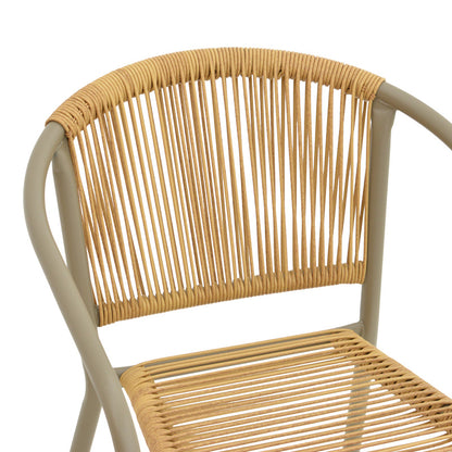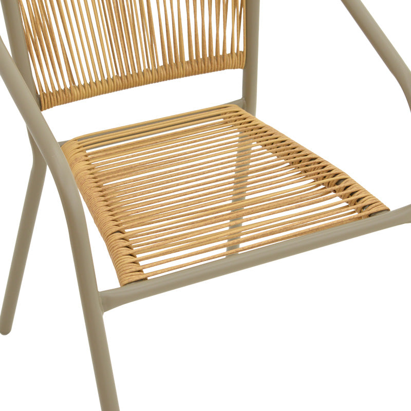 Lindaria pakoworld stackable armchair in champagne metal and natural PE rattan 54x63x74cm