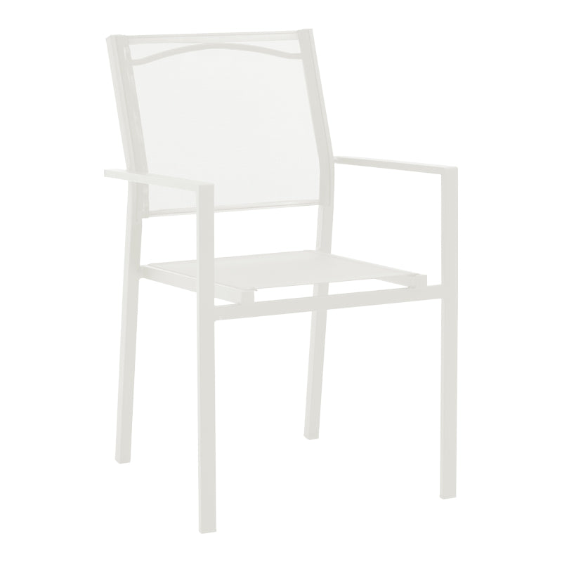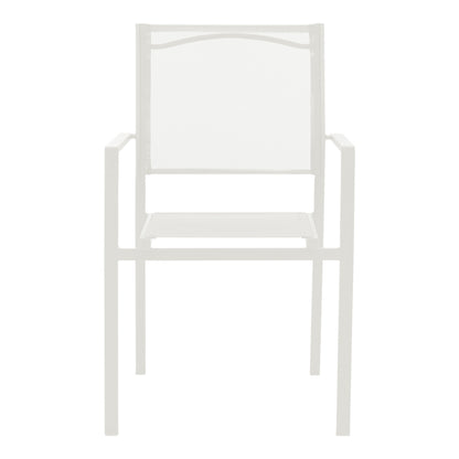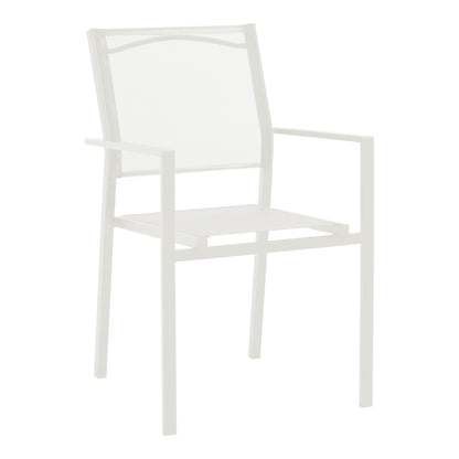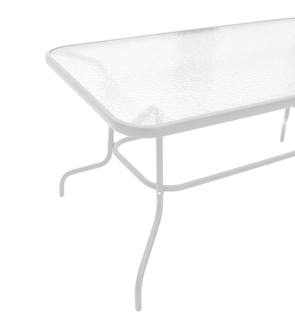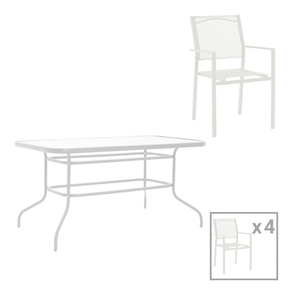 Do you want a durable dining table for your balcony or garden that will aesthetically upgrade your space? The Valor-Confidence garden series is ideal for you as it combines aesthetics with quality construction. The set includes four armchairs and a table. Technical characteristics of the table: Stable frame made of excellent quality metal with resistance to stress and wear. It has rounded corners to prevent injuries. Mainly table top made of tempered tinted glass. Great durability: suitable for outdoor use exposed to weather conditions and humidity. Offered in white. Table dimensions: Length: 140 cm. Width: 80 cm. Height: 70 cm. Technical characteristics of the armchair: Extremely durable metal frame with resistance to wear and tear. Seat cover with excellent quality textilene fabric. Textilene is washable and resistant to the conditions of the external environment (solar radiation, humidity). Stackable seat: offers ease of transport and storage. Available in white. Armchair dimensions: Length: 54 cm. Width: 54 cm. Height: 86cm Material information: Textilene: Textilene is an extremely durable material widely used in outdoor furniture and accessories. It consists of polyester fibers coated with PVC (polyvinyl chloride), creating a material that combines durability, weather resistance and flexible texture. This material allows air to pass through, helping to maintain a cool feeling during use. Tempered glass: First, use a soft damp cloth and mild detergent or just water. Spread the cloth over the tempered glass and clean it with gentle circular movements. Avoid using excessive pressure and materials that can cause scratches. Metal: Metal is widely used in furniture making, offering a number of advantages over other materials. It is extremely wear-resistant, ideal for furniture intended for daily use in a demanding environment. It maintains its shape and structure perfectly, ensuring stability and longevity to the furniture. In addition to the properties mentioned above, the metal may have other characteristics, such as antimicrobial activity (copper) or superconductivity (molybdenum). Aluminum: The material "ALU" refers to aluminum, which is the third most common element on earth and the first most common metal. Aluminum forms a protective oxidizing layer when in contact with air, protecting against corrosion, while being fully recyclable without losing its properties, making it a very sustainable material.Care instructions: Textilene: Textilene is easy to clean with simple soap and water. It does not require special maintenance or care and can remain in good condition with minimal care. Tempered glass- Safety glass: Tempered glass, also known as toughened or heat-treated glass, is a type of safety glass that has been specially treated to increase its strength compared to plain glass. The heat treatment process involves heating the glass to a high temperature and rapidly cooling it. This creates a compressive stress on the surface of the glass and a tensile stress on the inside, making it more resistant to impacts, thermal shocks and scratches. It is about 5 times more impact resistant than ordinary glass. An important advantage is that in the event of breakage, tempered glass shatters into small, blunt fragments, reducing the risk of serious injury. It is used in tables, desks, TV furniture, etc. Metal: If it is metal outdoor furniture, you should follow the steps below: For longer protection, coat your metal furniture with a protective cream that can be easily obtained from commercial stores. If your furniture is processed and painted using the powder-coating method (electrostatic painting) then it is very durable and easy to clean with a damp cloth. If your metal furniture does not have an electrostatic paint, then you should take extra care of it and keep it away from water and moisture. You can cover them with special covers and in the winter put them indoors if you can. If you notice rust, then remove it with turpentine and then apply an anti-rust varnish before painting the surface with an oxidation-resistant paint. Aluminium: Use a damp microfiber cloth dampened with water. If the aluminum has a lot of residue, such as rust or stains, use a mild detergent or cleaner to remove it. Remarks: The product is delivered in factory packaging. The color shade of the product may differ slightly from its photographic representation on your screen.