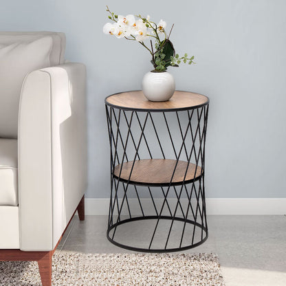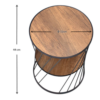 Βοηθητικό τραπεζάκι Jaspin Megapap μεταλλικό - Mdf χρώμα μαύρο - καρυδί 32x32x44εκ.