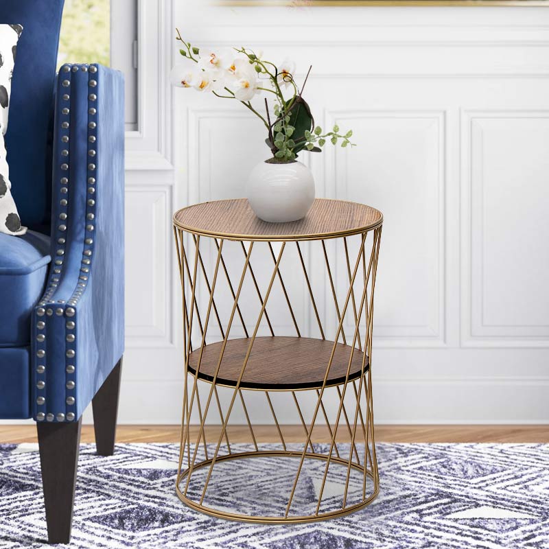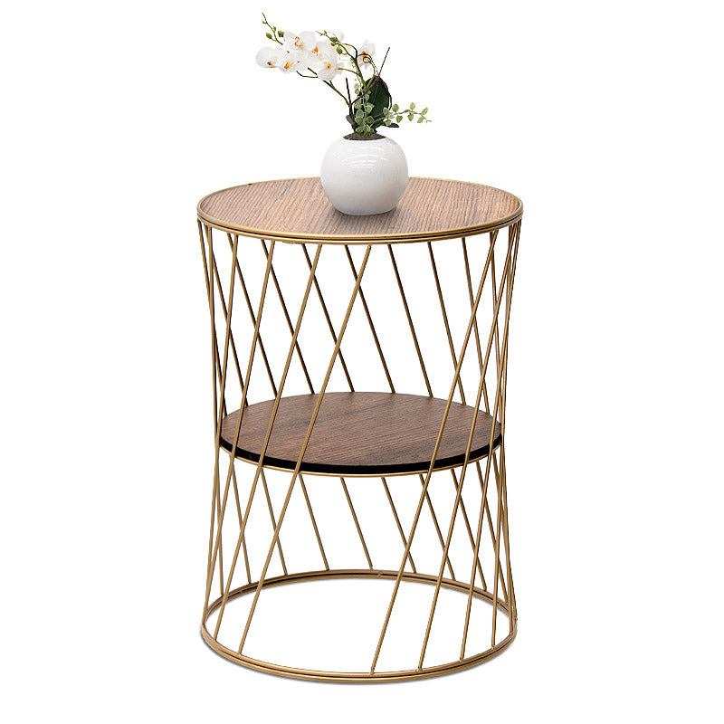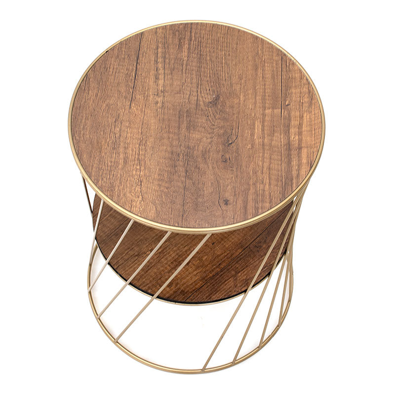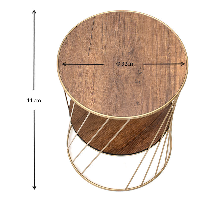 Βοηθητικό τραπεζάκι Jaspin Megapap μεταλλικό - Mdf χρώμα χρυσό - καρυδί 32x32x44εκ.