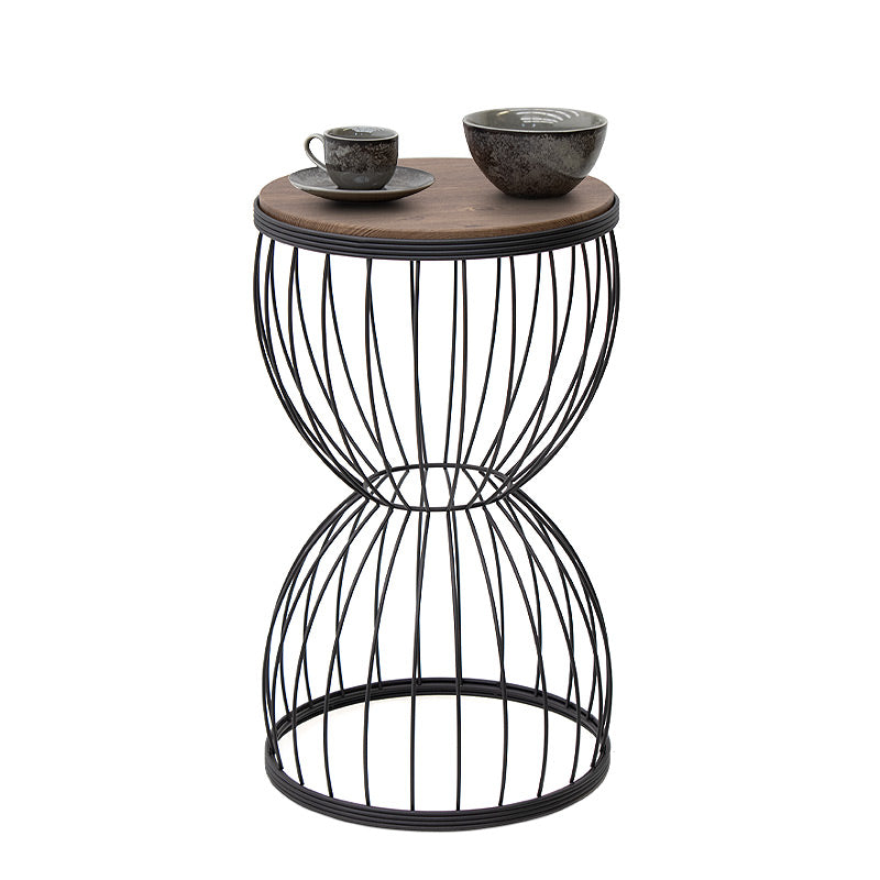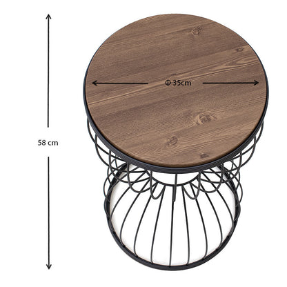 Βοηθητικό τραπεζάκι Pino Megapap μεταλλικό - Mdf χρώμα μαύρο - καρυδί 35x35x58εκ.