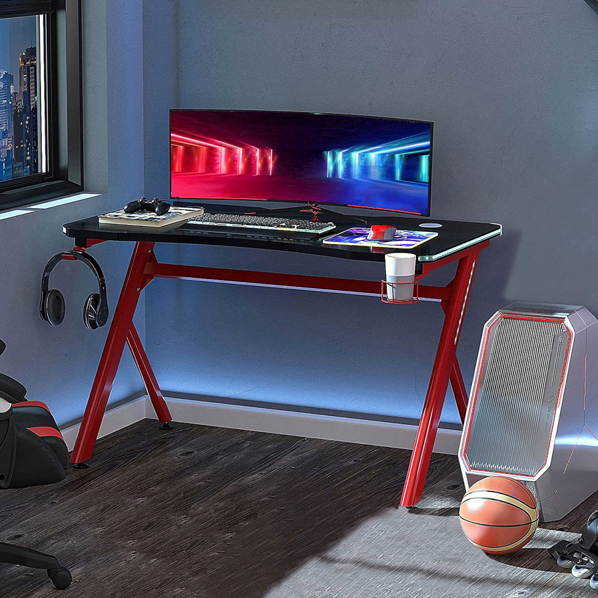 Γραφείο Gaming KENOBI RGB Μαύρο/Κόκκινο Ξύλο/Μέταλλο 120x65x75cm