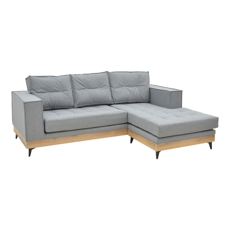 Γωνιακός καναπές αναστρέψιμος Mirabel pakoworld γκρι ύφασμα-φυσικό ξύλο 250x184x100εκ