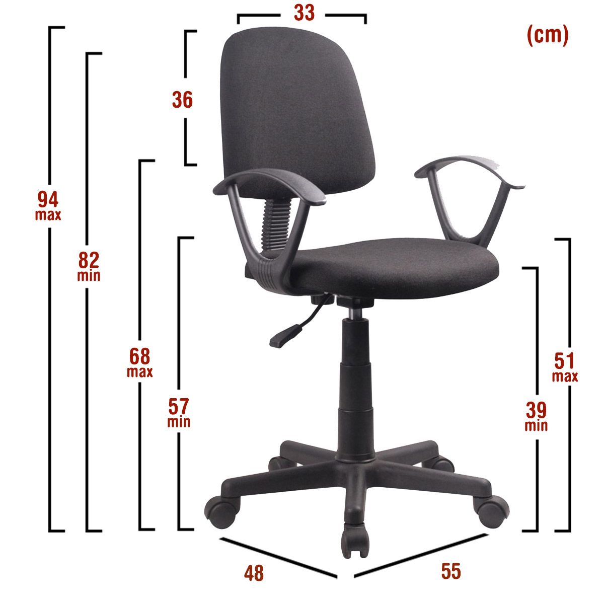 Καρέκλα Γραφείου ΔAΦNH Μαύρο Ύφασμα 55x48x82-94cm