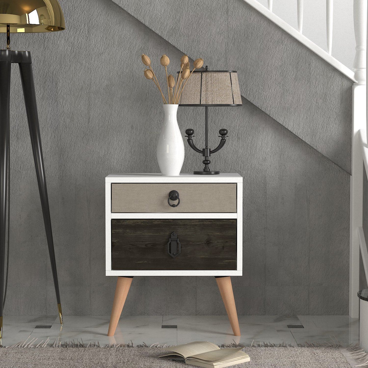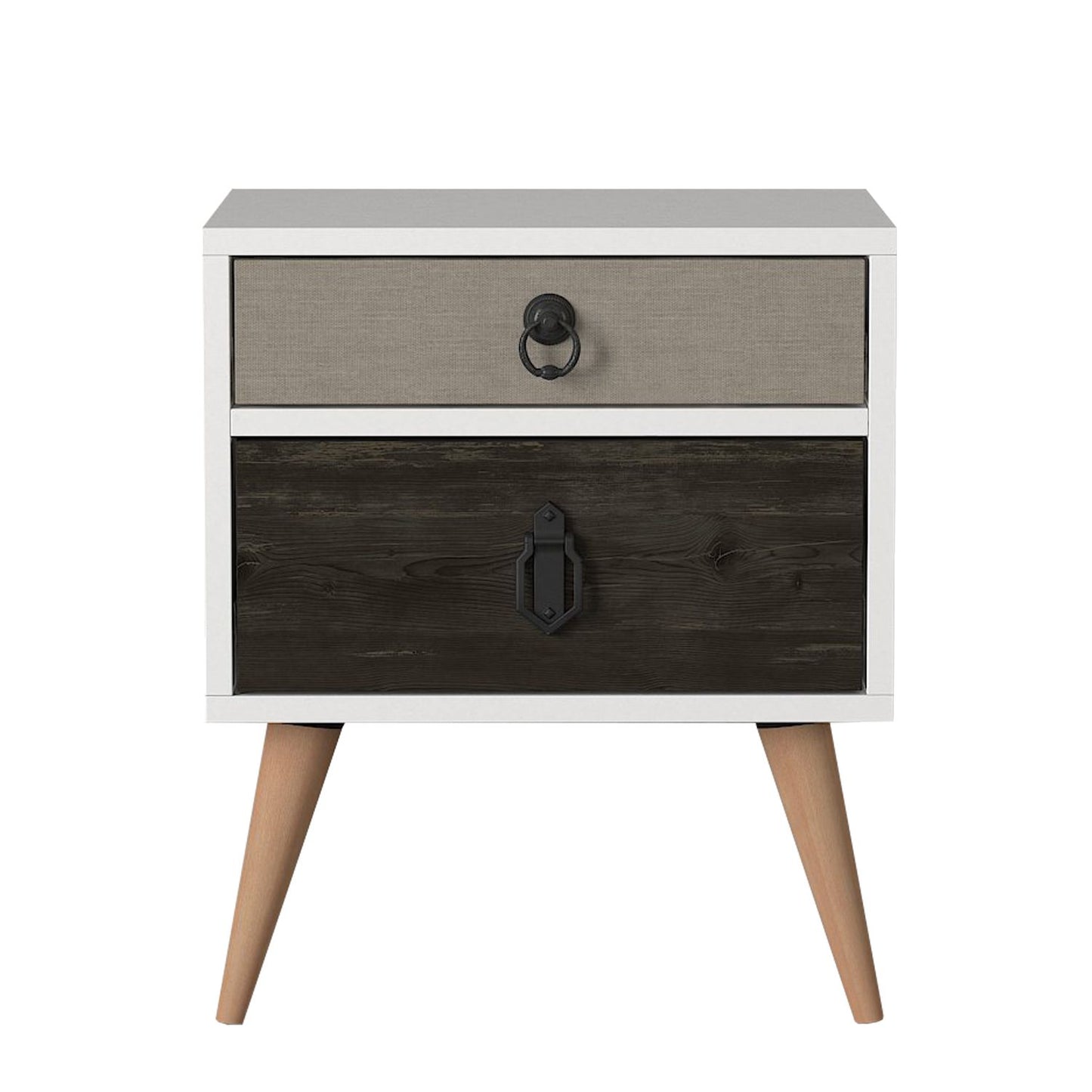 Κομοδίνο KIMOLOS λευκό/φυσικό/καφέ 45x30x52cm.