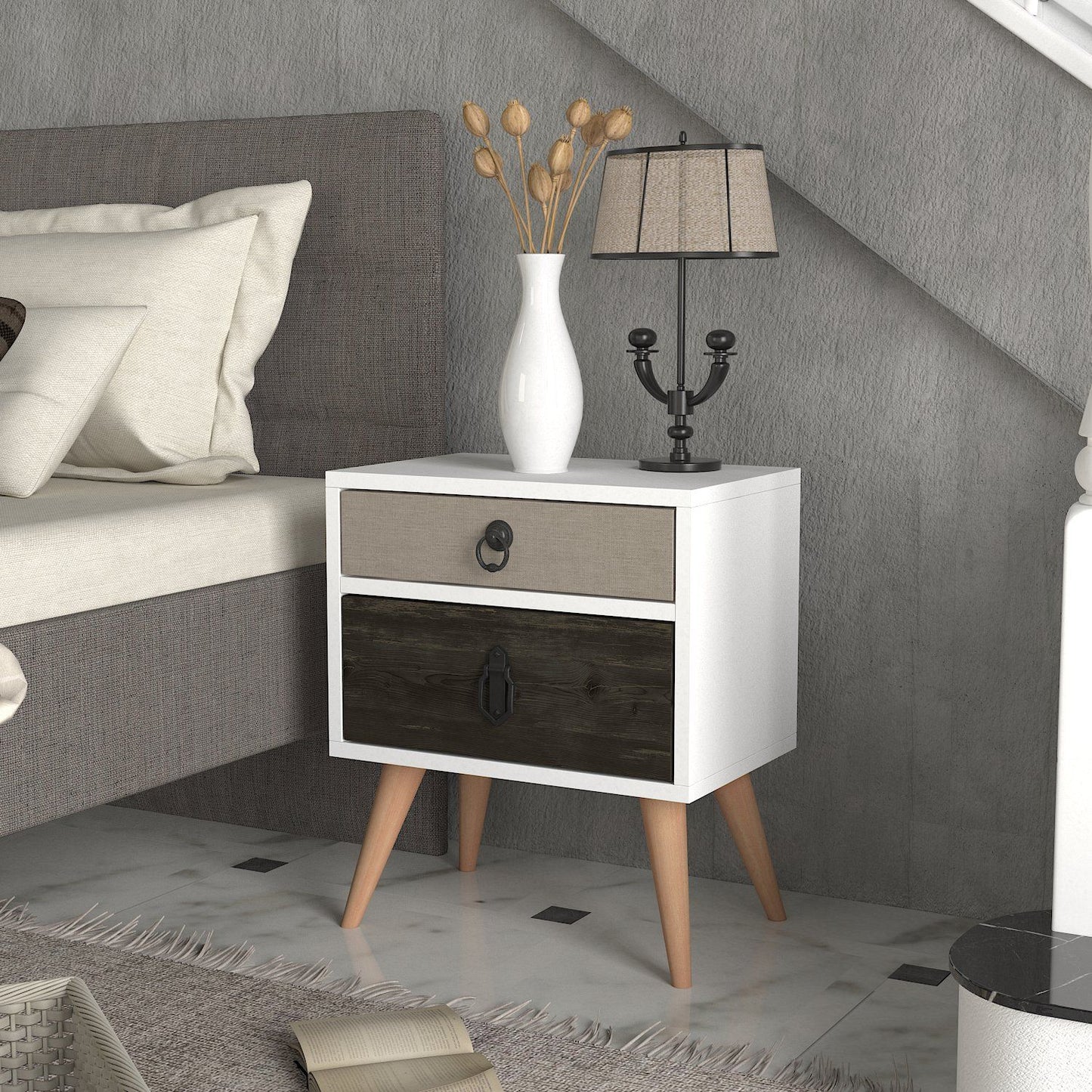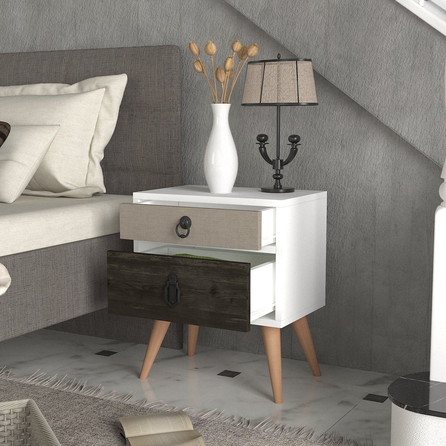 Κομοδίνο KIMOLOS Λευκό/Φυσικό/Καφέ 45x30x52cm