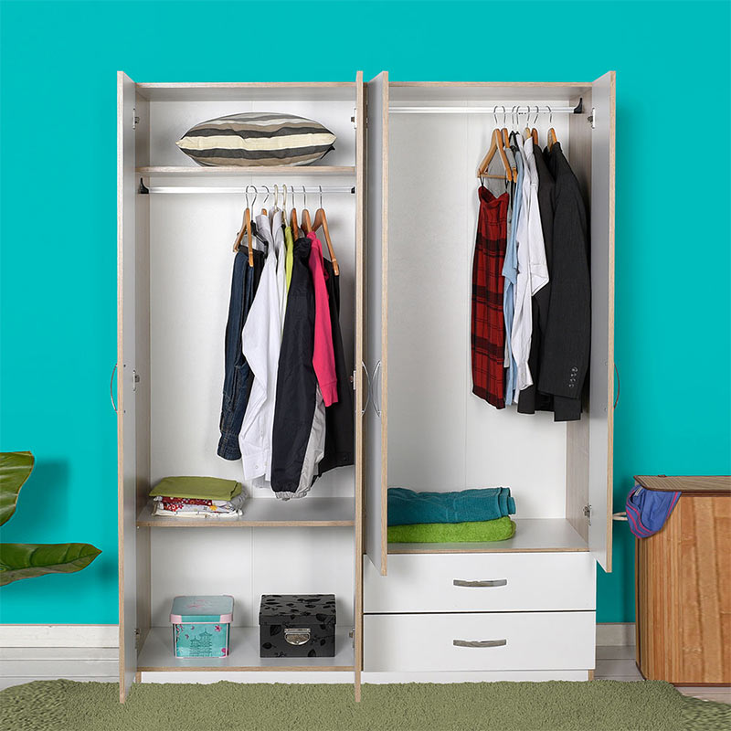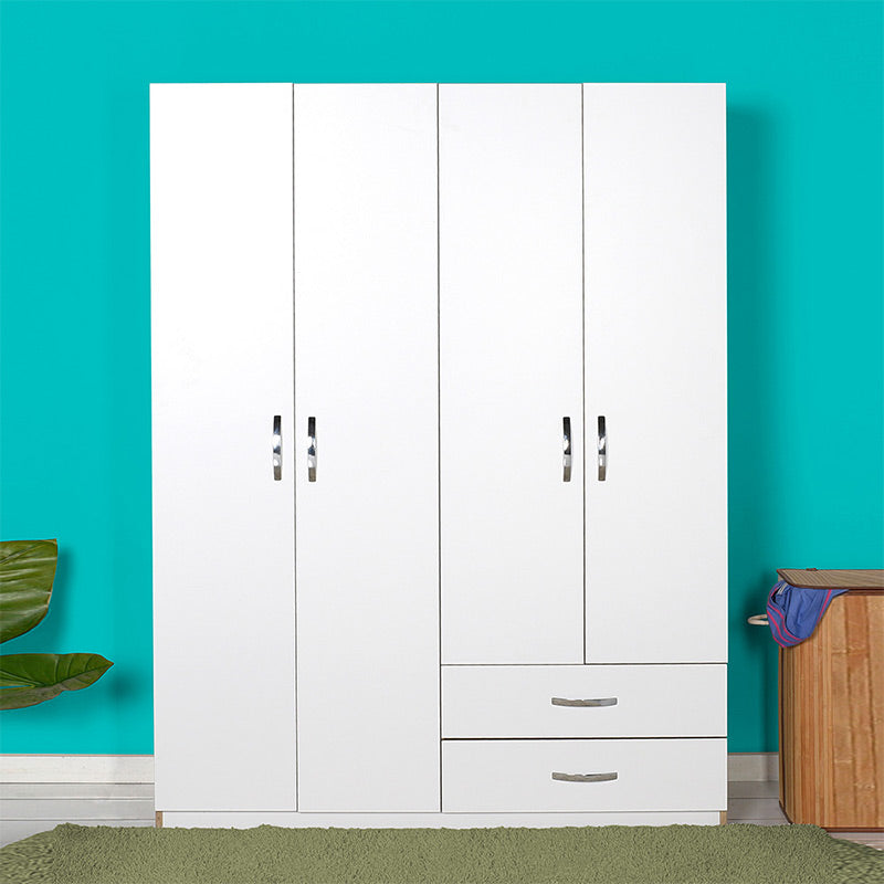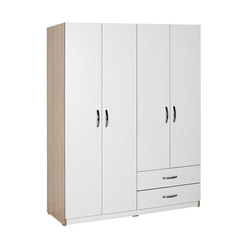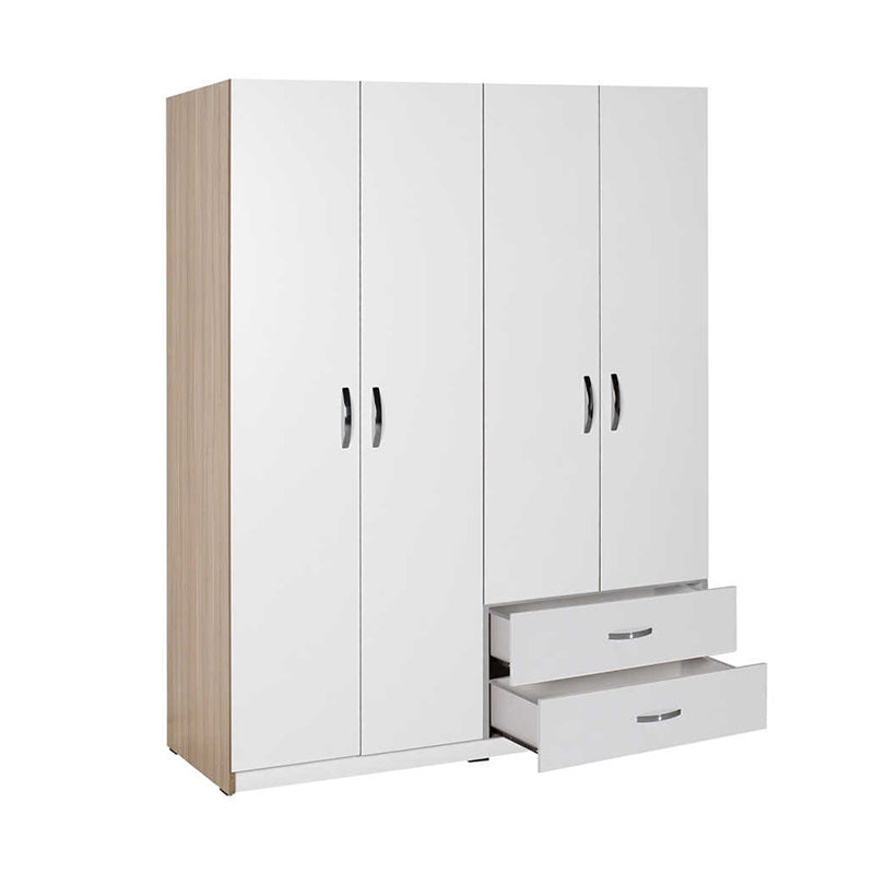 Ντουλάπα ρούχων Drum Megapap τετράφυλλη σε χρώμα λευκό - φυσικό 140x53x182εκ.