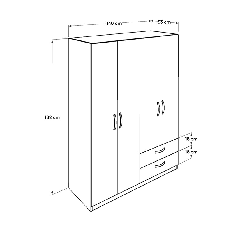 - Διαστάσεις: Μήκος 140 x Βάθος 53 x Ύψος 182 εκ.