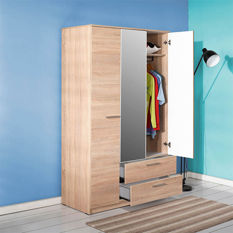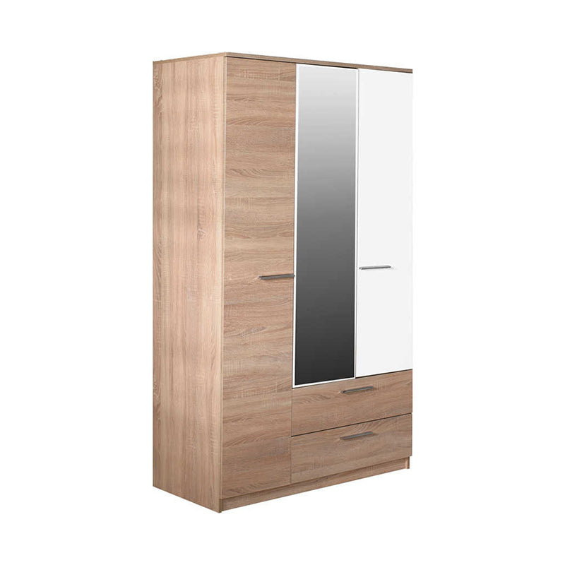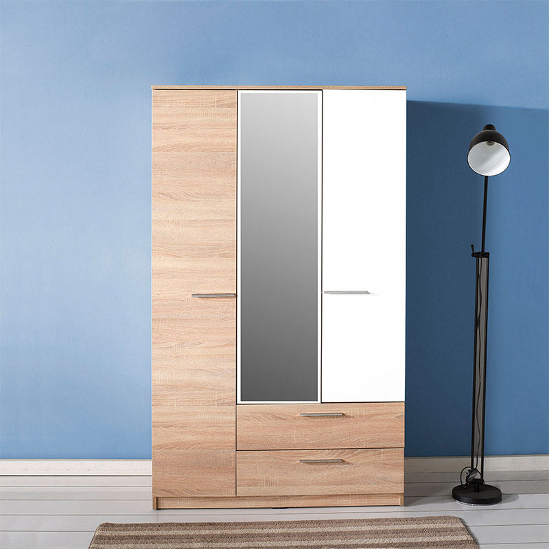 Ντουλάπα ρούχων Plus Megapap τρίφυλλη με καθρέφτη σε χρώμα sonoma - λευκό 109x52x184εκ.