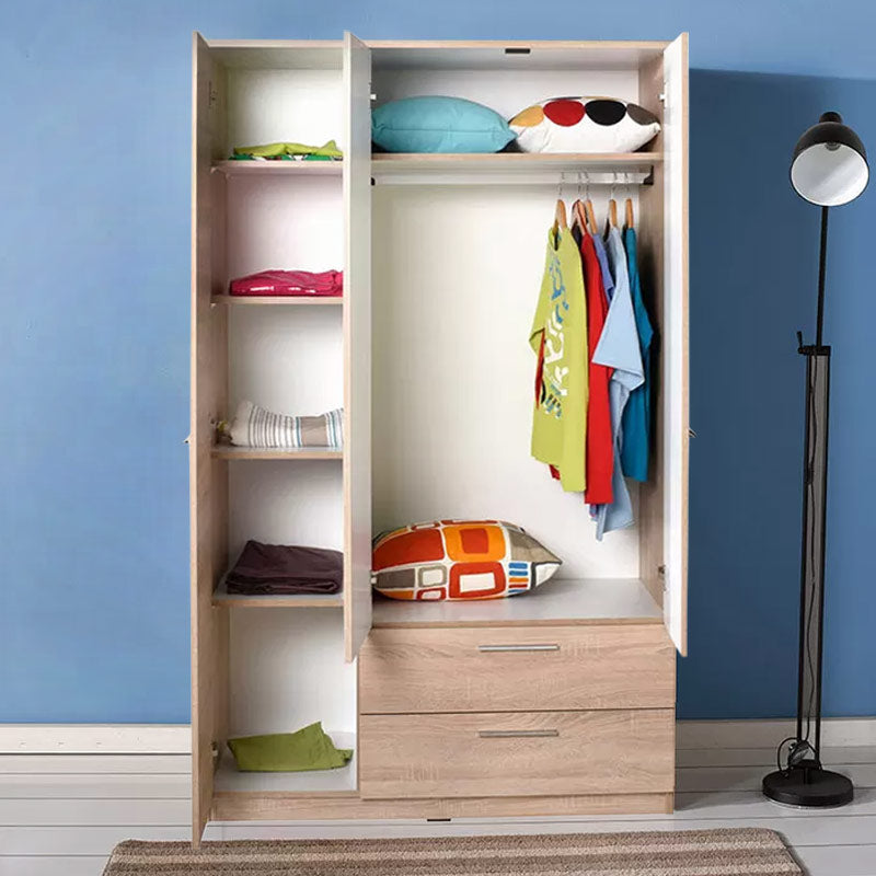 Ντουλάπα ρούχων Lihn Megapap τρίφυλλη σε χρώμα sonoma - λευκό 109x52x184εκ.