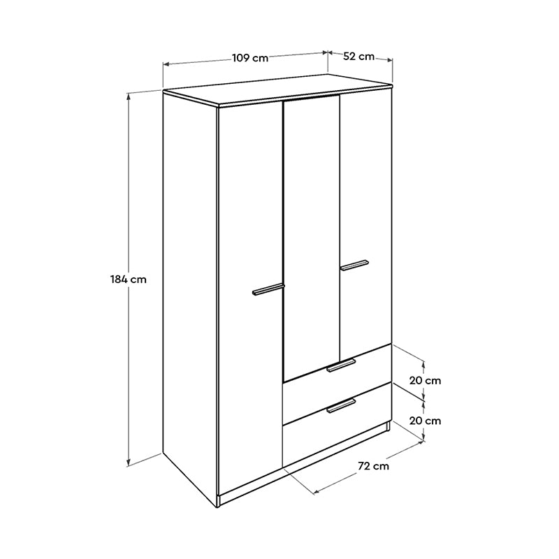 - Διαστάσεις: Μήκος 109 x Βάθος 52 x Ύψος 184 εκ.