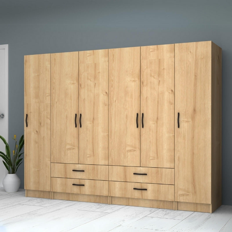 Ντουλάπα ρούχων Ricardo Megapap εξάφυλλη χρώμα φυσικό οξιάς 240x51,8x181εκ.