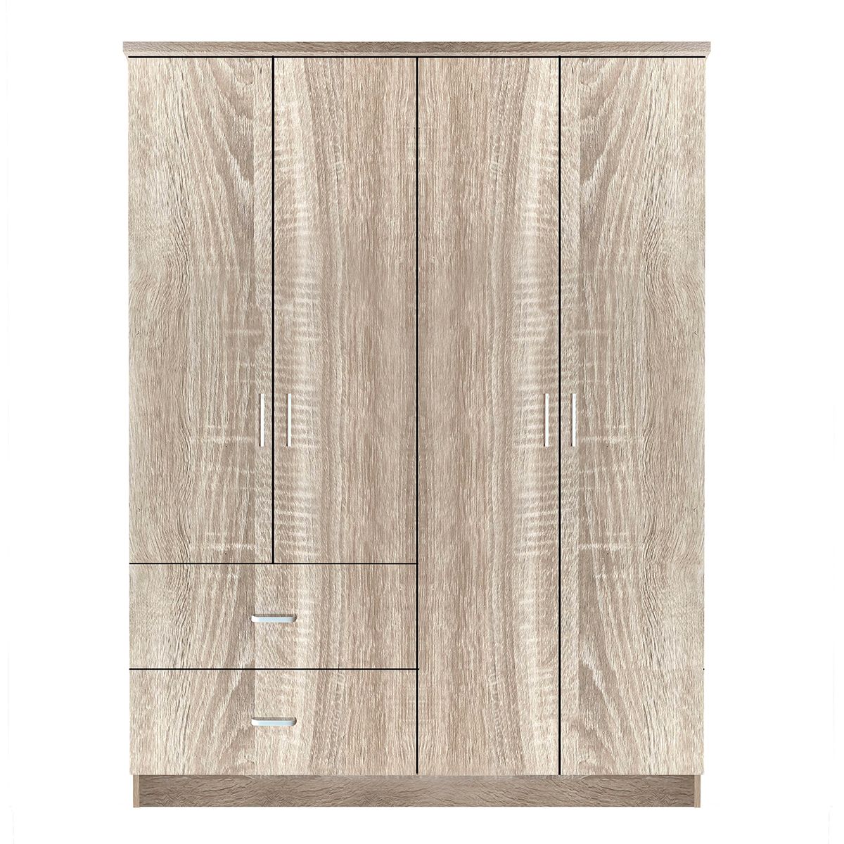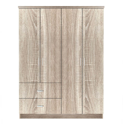 Ντουλάπα ρούχων τετράφυλλη κατασκευασμένη από οικολογική μοριοσανίδα, επενδεδυμένη με μελαμίνη. Minimal σχεδιασμός σε φυσικό χρώμα που θα δέσει αρμονικά με το χώρο σας . Διαεθέτει δύο μεγάλα συρτάρια για ακόμη περισσότερο αποθηκευτικό χώρο. Το προιόν μπορεί να χρησιμοποιηθεί για οικιακή και επαγγελματική χρήση (ξενοδοχεία, ξενώνες, airbnb κτλ).