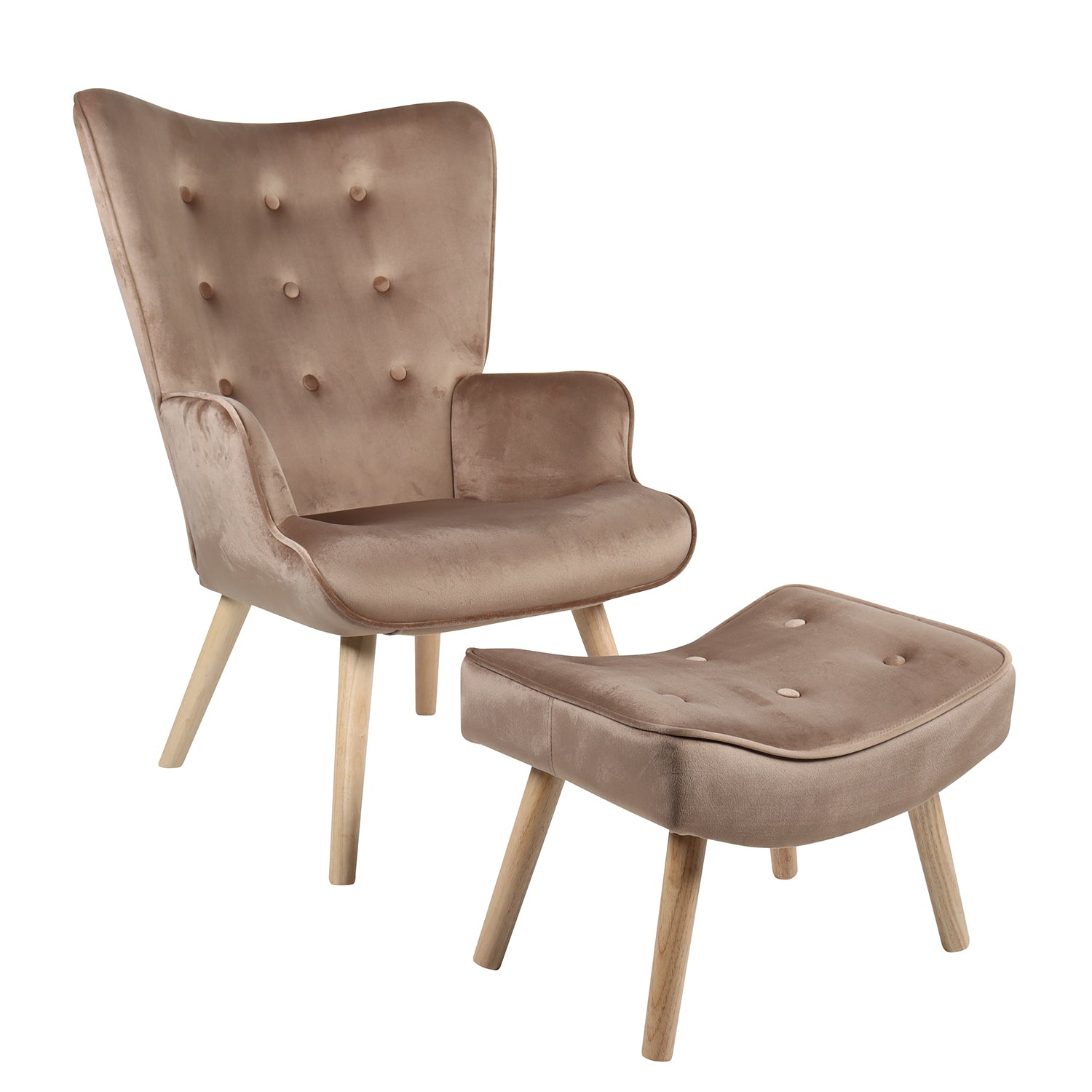 Πολυθρόνα Μπερζέρα Με Υποπόδιο ANIDORI Καφέ Βελούδο/Ξύλο 73x69x96cm