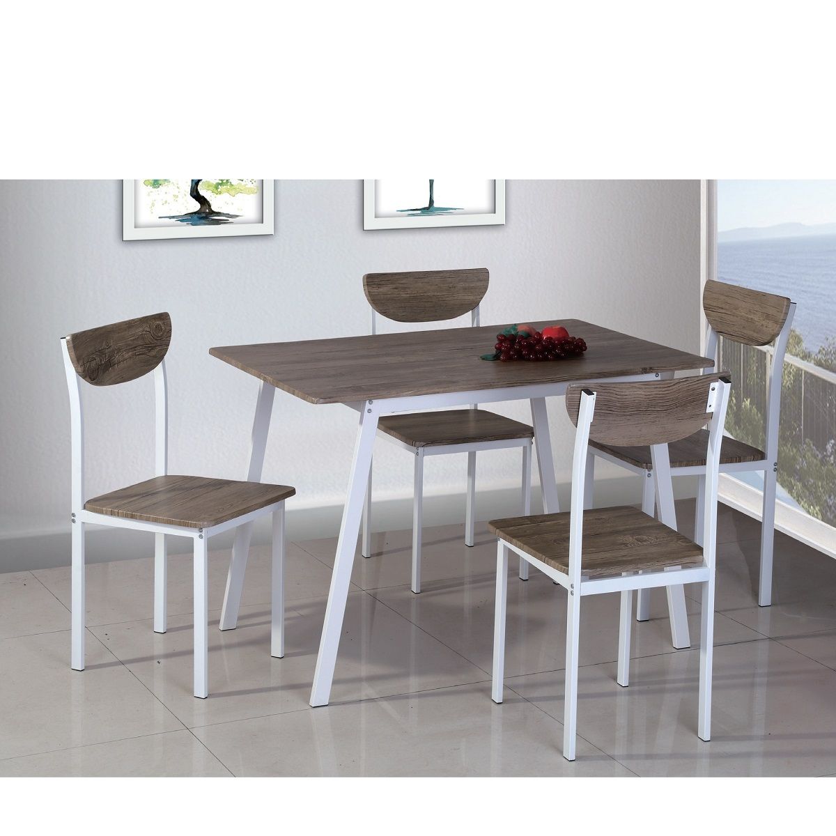 Τραπέζι Σετ (4+1) LINDERIA Λευκό/Καφέ 110x70x75cm
