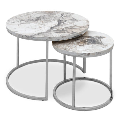 Τραπεζάκια σαλονιού Gary Megapap Mdf - μεταλλικό χρώμα μπεζ εφέ μαρμάρου - χρωμίου 65x65x44εκ.