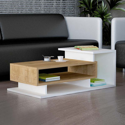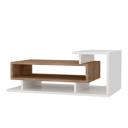 Τραπεζάκι σαλονιού Flynn Megapap από μελαμίνη χρώμα λευκό - καρυδί 90x50x35εκ.
