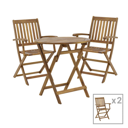 Τραπεζαρία Joter-Carpuva pakoworld σετ 3τεμ πτυσσόμενο φυσικό μασίφ ξύλο ακακίας Φ70x74εκ