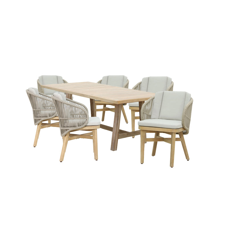Τραπεζαρία Poza-Farem pakoworld 7τμχ μασίφ ξύλο ακακίας-ευκαλύπτου-μπεζ ύφασμα