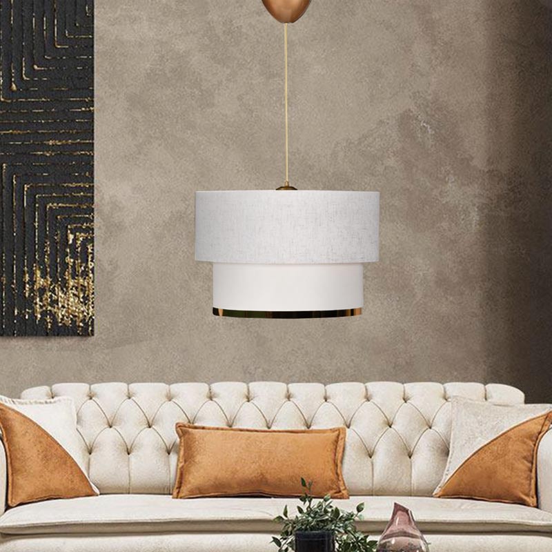 Φωτιστικό οροφής Barnhart Megapap υφασμάτινο χρώμα λευκό/χρυσό 30x20x70εκ.