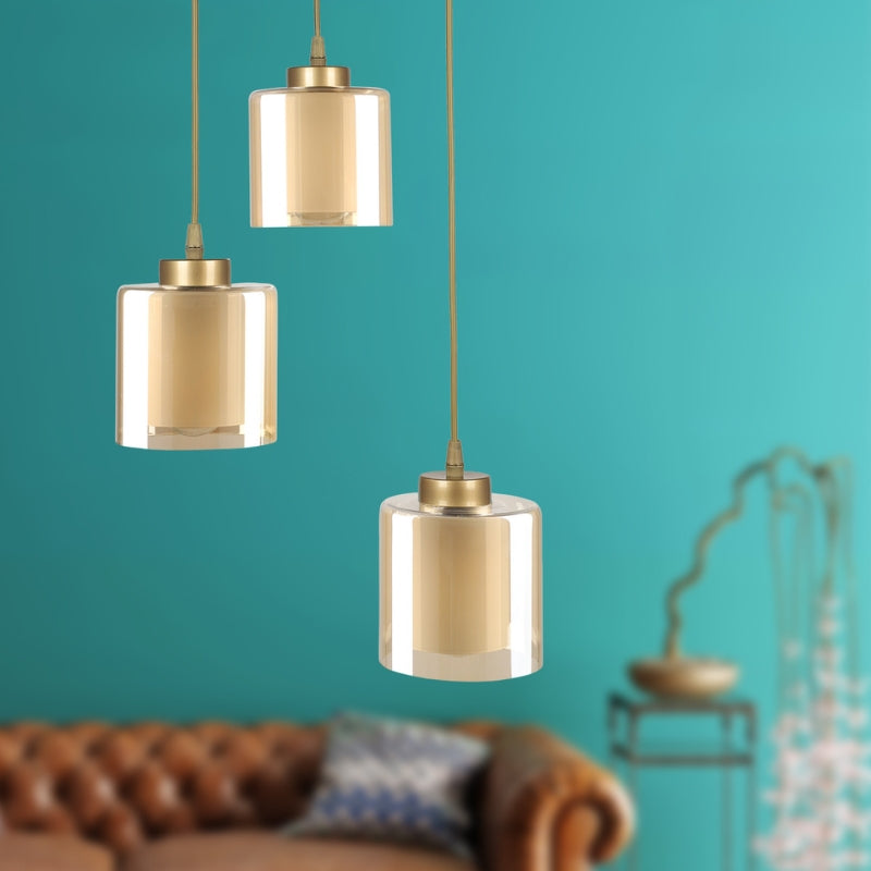 Φωτιστικό οροφής Kenedy Megapap E27 μεταλλικό - γυάλινο τρίφωτο χρώμα χρυσό Ø30x95εκ.